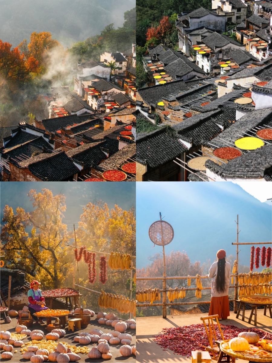 篁岭,篁岭属典型的山居村落,因晒秋闻名遐迩,梯田村落,被誉为“中国最美乡村”